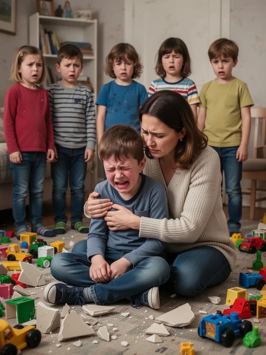 Мама зашла в детскую. Мальчики стояли молча, понимая, что сейчас будет какое-то наказание. Кирюши среди них не было. Мама открыла дверцу шкафа. Там сидел её младший сын и улыбался. И тут маму прорвало: