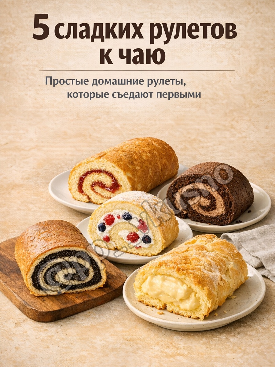 В подборке сразу 5 разных вариантов рулетов, чтобы каждый мог выбрать свой любимый вкус 👇