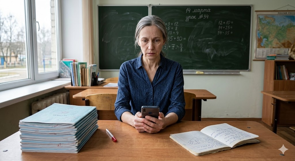 Антонина положила телефон на стол. Из-за двери доносился топот — перемена заканчивалась. Через три минуты урок. Седьмой «А», диктант. Тридцать два ребёнка за партами, тетради раскрыты, ждут.