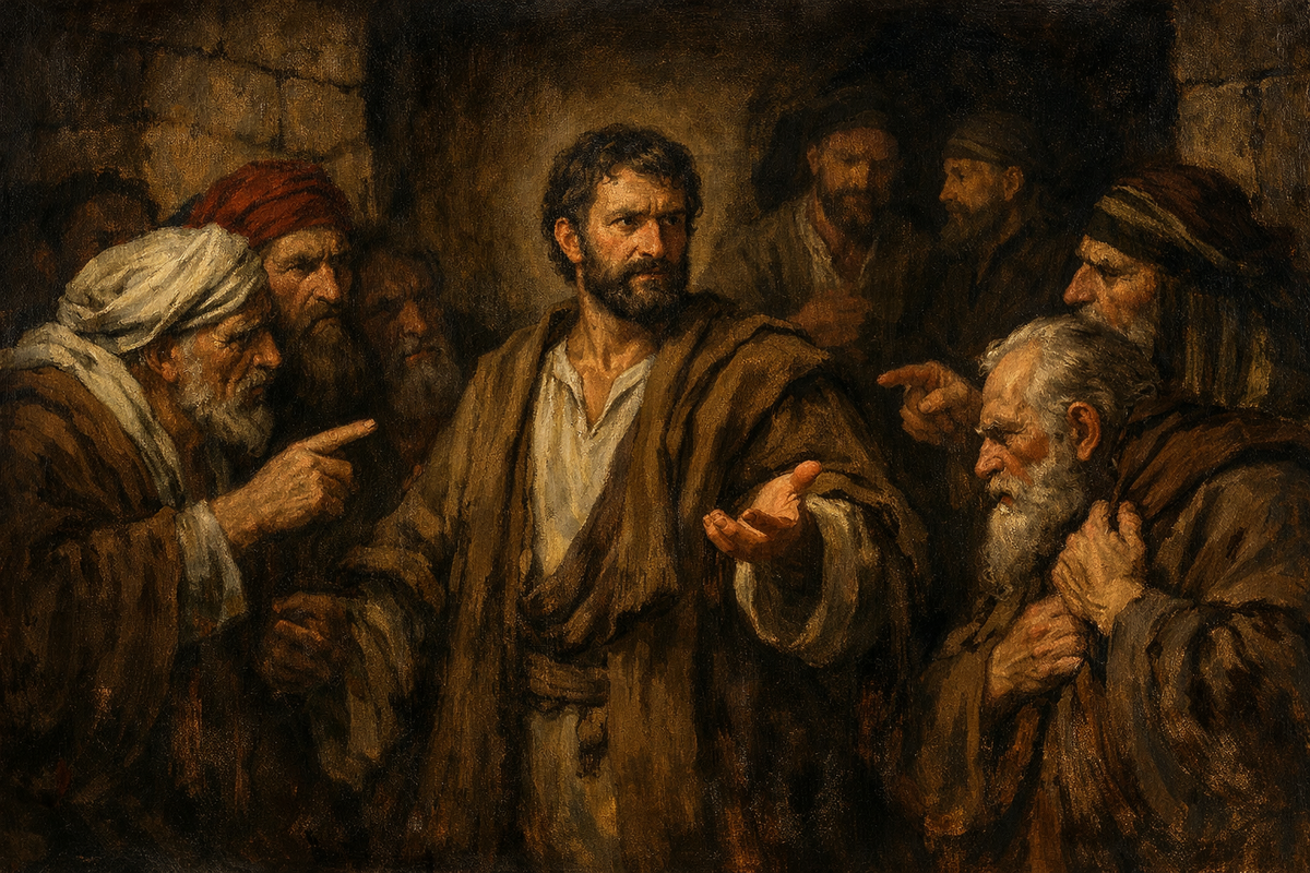 Слухи всегда бегут быстрее посланников. Пётр ещё не дошёл до Иерусалима, а весть о том, что произошло в Кесарии, уже обгоняла его. Передавали шёпотом, потом громче, потом с негодованием. «Ты слышал? Пётр вошёл в дом к язычникам. Он ел с ними. Он крестил их. Римского сотника и всю его семью». Иерусалим кипел. Когда Пётр вошёл в город, его встретили не как героя, а как обвиняемого. Ученики, верующие из обрезанных, те, кто ещё недавно молился о его освобождении из темницы, теперь смотрели на него с подозрением. Среди них были те, кто считал, что спасение только для иудеев. Те, кто свято хранил закон. Те, для кого язычник оставался нечистым, даже если уверовал. Они не выдержали. — Ты входил к людям необрезанным! — голоса звучали резко, обвинительно. — Ты ел с ними! В этих словах была не просто обида. Это был ужас. Стена, которую они строили всю жизнь, рушилась. Если язычники принимаются без обрезания, без закона, без соблюдения субботы — то что остаётся от их исключительности? Зачем тогда