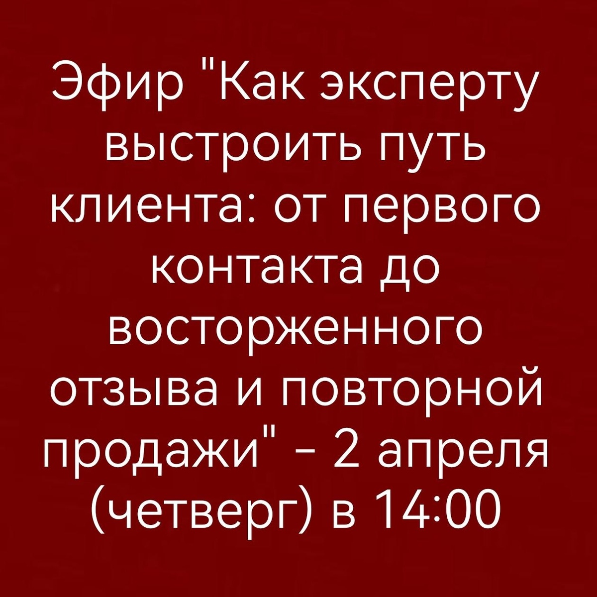 Друзья, сегодня жду в 14:00 на эфир "Как выстроить путь клиента: от первого контакта до восторженного отзыва и повторной продажи"