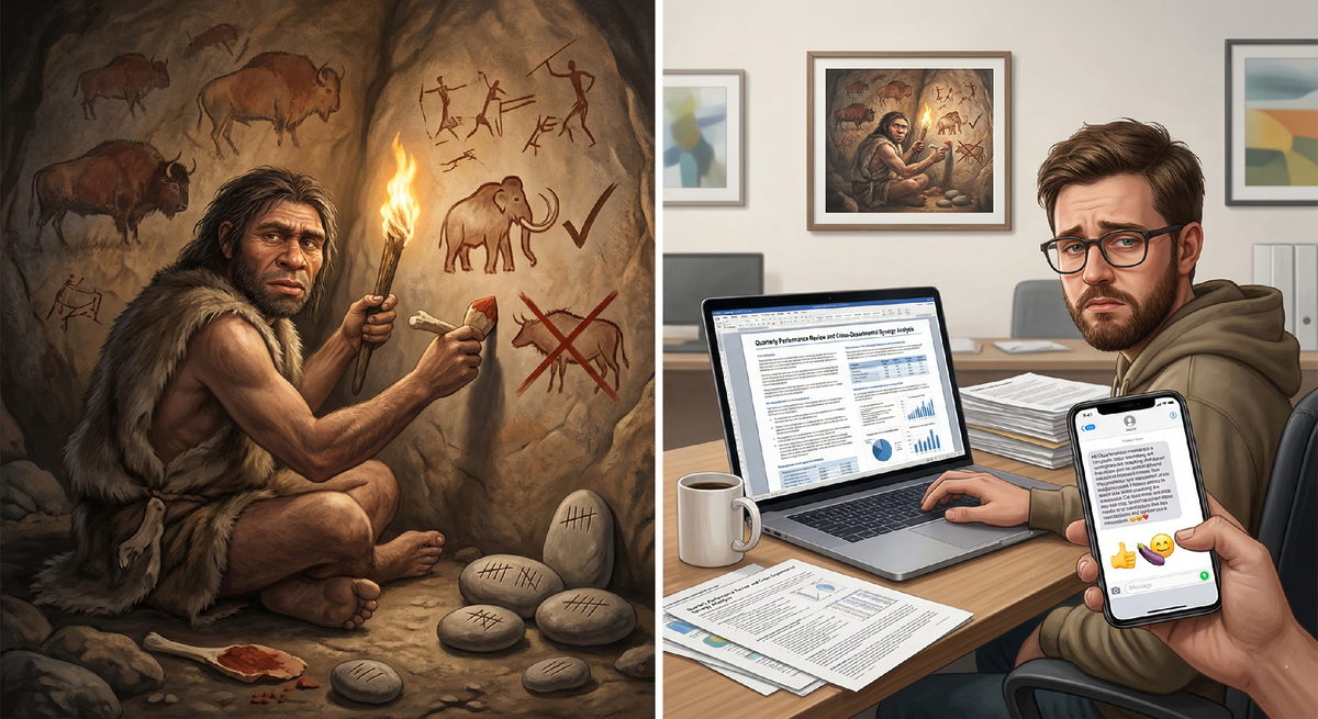 Жизнь в палеолите была честной и грубой, как хозяйственное мыло. Ты либо ел, либо тебя ели. Никаких тебе дедлайнов, экзистенциальных кризисов и уведомлений от налоговой. Утро начиналось не с кофе, а с энергичного забега от саблезубого тигра. И казалось бы, зачем в таких спартанских условиях тратить драгоценные калории на царапанье камней? Но человек — существо беспокойное. Ему всегда мало просто выжить, ему нужно еще об этом заявить.