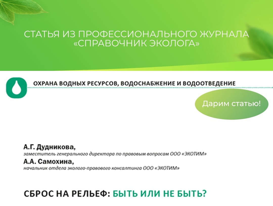 Так исторически сложилось, что к сбросу на рельеф прибегает огромное количество природопользователей — от владельцев домов частного сектора до серьезных предприятий, оказавшихся в недостаточной досягаемости как коллектора, так и водного объекта. Однако данный аспект природопользования не нашел своего отражения в праве. Скачать статью