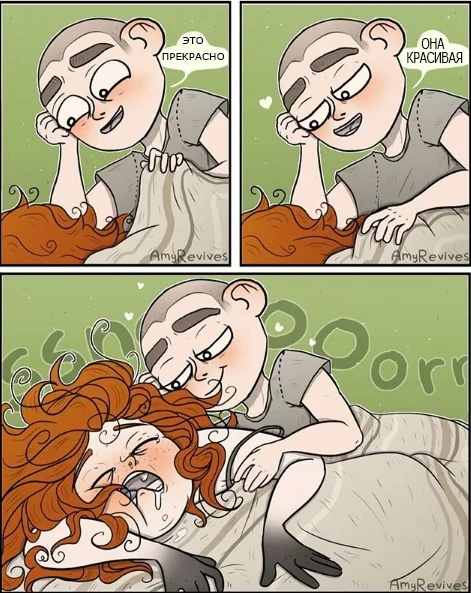 Самое приятное в работах Эми Ревивс — их интонация. Сейчас юмор часто строится на нападении: кого-нибудь обязательно нужно поддеть, разоблачить, вывести на чистую воду или хотя бы слегка укусить. У Эми всё иначе. Её комиксы не пытаются быть острыми любой ценой. Они не про язвительность, а про узнавание.