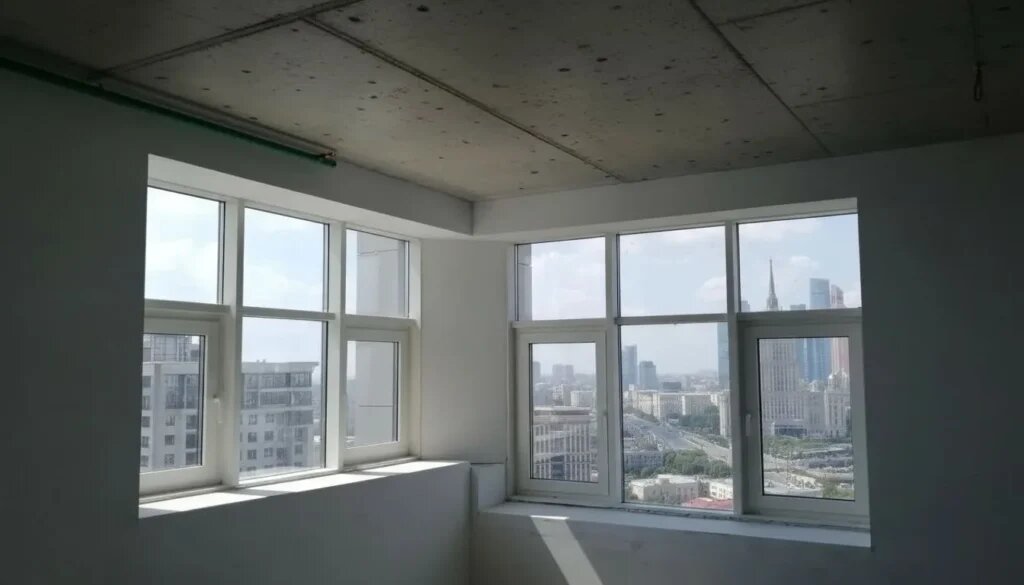 Первый вариант — черновая отделка. Это минимальный уровень подготовки помещения, при котором в квартире уже проведены основные инженерные коммуникации: подведены водоснабжение и электричество, установлены оконные блоки, а также выполнена стяжка пола. Стены и потолки при этом остаются без выравнивания, а чистовая отделка не производится. Такой формат подходит тем, кто планирует выполнять ремонт самостоятельно «с нуля» и хочет иметь максимальную свободу в выборе материалов и планировочных решений.