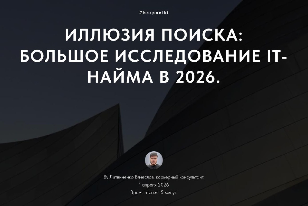 Оцифрованная реальность 2026 года. 📉 Мы в #bezpaniki устали от гаданий «почему мне не отвечают». Мы пошли к тем, кто нажимает кнопку «Отказать», и опросили 100 IT-рекрутеров и HRD. Что вскрыло исследование: 10 секунд на решение и тотальное недоверие: 82% нанимателей проверяют каждую цифру. Эффект ИИ: 91% рекрутеров видят «нейросетевой» текст. Помогает это или топит кандидата? 94% отказов на скрининге: Люди «гибнут» в самом начале пути. Это карта минного поля. Без прикрас и корпоративного булшита. Читать исследование: 🔗 https://bezpanikiit.tilda.ws/100it P.S. Если ваше резюме не работает, в конце статьи есть запись на аудит резюме. 15 минут, чтобы разобрать ошибки и понять, почему вы не проходите через те самые 10 секунд просмотра.