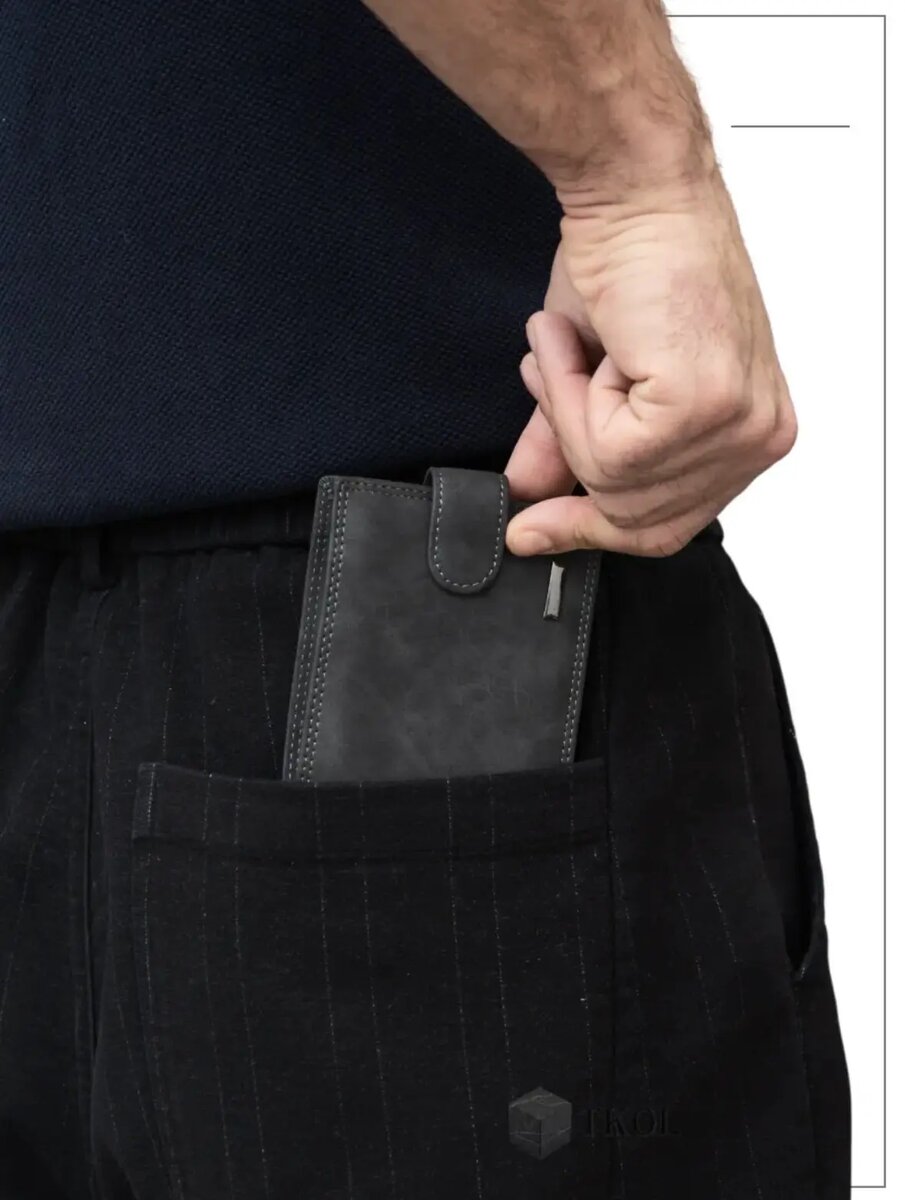 Постоянный контроль. Кошелек в переднем кармане брюк прилегает к телу. Вы чувствуете его вес и давление при движении, что позволяет моментально заметить пропажу.