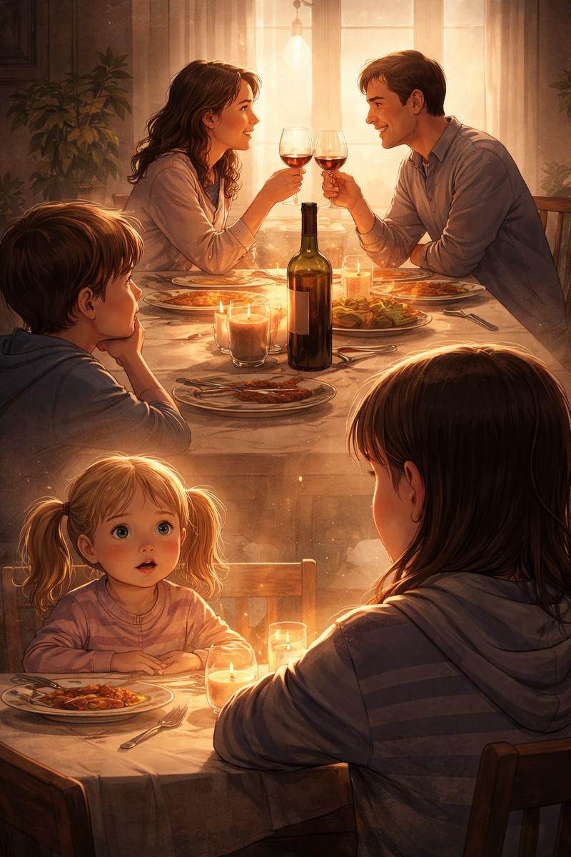 Казалось бы, тяжелее всего детям, которые видели скандалы и запои. Данные говорят иначе. Ребенок в пять лет и тот же ребенок в тринадцать смотрят на одну и ту же бутылку вина за праздничным столом ‒ и видят принципиально разные вещи. Не потому что один умнее другого. А потому что каждый возраст дает свой фильтр восприятия. И то, что «записывается» в каждом из этих периодов, предсказывает поведение куда точнее, чем любой разговор о вреде алкоголя в старшей школе. Раньше, чем принято думать. По данным ряда исследований, ожидания от алкоголя ‒ представления о том, что он делает с человеком, ‒ появляются уже в дошкольном возрасте. Дети знают: «это для взрослых», «от этого меняется поведение». Никто их этому специально не учил. Самый резкий скачок происходит между 9 и 11 годами. Именно тогда позитивные ожидания ‒ расслабляет, помогает не стесняться, для компании и веселья ‒ растут быстрее всего. Этот период исследователи называют критическим для формирования установок. К 12–13 годам у больш