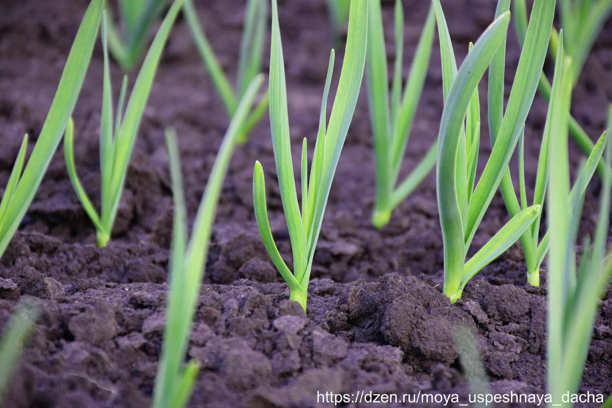 Здравствуйте, дорогие садоводы и огородники! У многих уже начали появляться первые ростки чеснока. Но чтобы эти ростки превратились в крепкие, сочные листья и дали хороший урожай, важно не упустить момент и правильно ухаживать за растениями именно сейчас. Вот несколько простых, но очень важных шагов, которые помогут чесноку не желтеть и наращивать мощную зелёную массу. После появления ростков аккуратно разрыхлите почву между рядами чеснока. Это мероприятие необходимо проводить с чесноком на протяжении всего периода вегетации. После каждого полива или дождя на поверхности земли образуется плотная корка. Она перекрывает доступ кислорода к корневой системе, что замедляет рост и может привести к пожелтению кончиков листьев. Как только чеснок тронется в рост, ему потребуется дополнительное питание для наращивания зеленой массы. Первую весеннюю подкормку проводят по одному из двух признаков: Важно дождаться, пока воздух прогреется до 10–15 градусов днем, чтобы удобрение начало эффективно ра