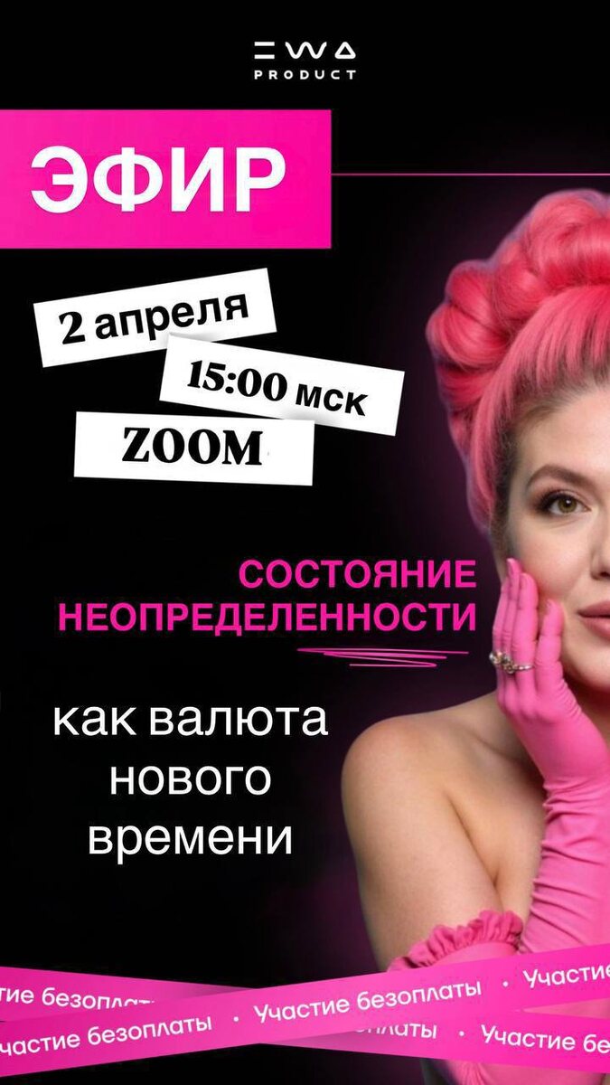 2 апреля | 15:00 мск | Zoom Состояние, в котором сейчас живут почти все, но не все это признают — неопределённость. Когда нет чётких ответов, нет гарантий и привычные опоры больше не работают. И именно здесь сейчас происходит перелом. Потому что валюта нового времени — не энергия, а способность психики выдерживать это состояние и не разваливаться. Если тебя «штормит», накрывает и нет понимания, куда идти дальше — это не откат, это этап. На эфире разберём: — почему это с тобой происходит — что на самом деле сейчас меняется — как выстроить внутреннюю опору, когда снаружи хаос И главное — сделаем практику. После которой станет тише внутри и появится ясность. Без воды. Без «соберись». Без иллюзий. Только реальность и как в ней жить. Участие без оплаты Чтобы получить ссылку на эфир 👇 https://t.me/m/KBQwEeZEN2Iy