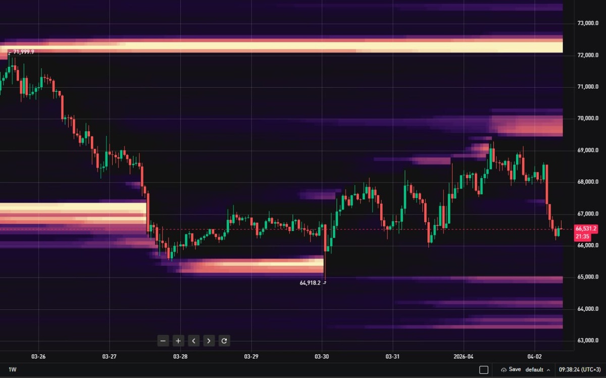 Карта ликвидаций BTC (таймфрейм 1h)