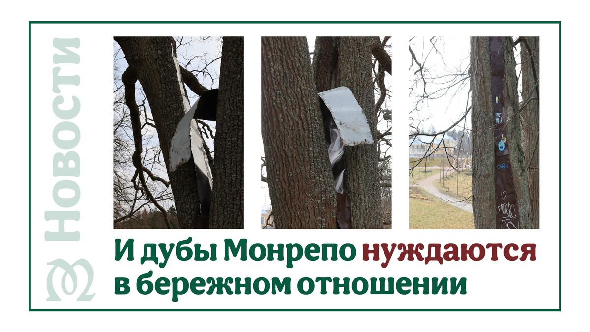 С большим огорчением снова встречаем в парке следы неподобающего поведения гостей. На одном из дубов, растущих под Чайной беседкой, повреждена металлическая пластина. Конструкция поддерживает здоровье дерева, не давая ему погибнуть. В ходе реставрации ландшафта парка нам, как это ни печально, пришлось расстаться со многими больными старовозрастными деревьями. Предварительно каждое из них было кропотливо и основательно обследовано. Разумеется, те, которые можно было спасти, мы постарались пролечить и принять все меры, чтобы продлить им жизнь. Ведь это тоже наша история, наследие, которое мы бережно храним. Ствол дуба, о котором идет речь, опасно раздваивался, норовя разломиться. Чтобы сохранить его, мы удалили из расщелины гниль и грибок, заражённые поверхности обработали антисептиком. После этого были наложены стяжки, прикреплены металлические накладки, преграждающие доступ влаге и вредным микроорганизмам. Заместитель директора Музея-заповедника «Парк Монрепо» Марина Сметанкина сравнив