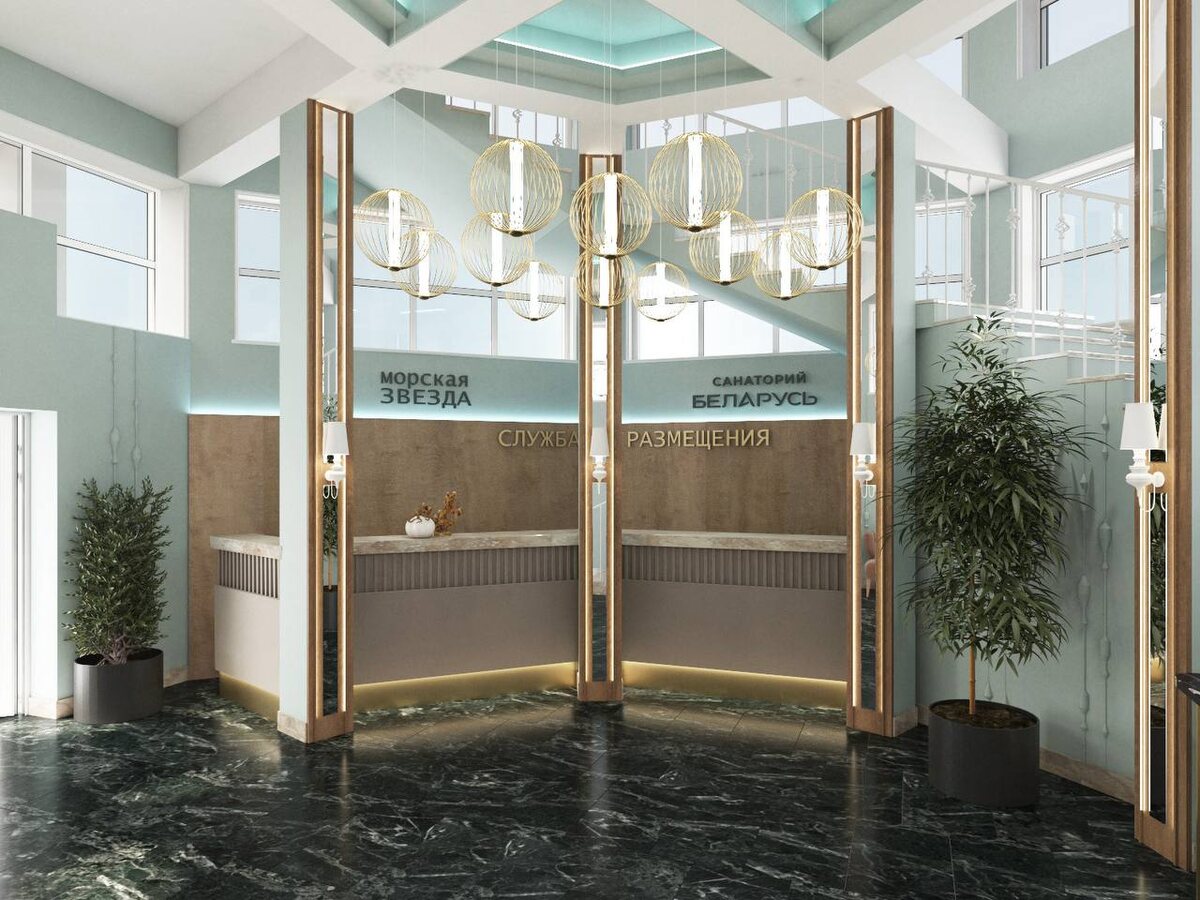 Дизайн помещения Службы размещения в санатории Беларусь, комплекс отдыха «Морская звезда