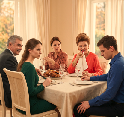 Но главным источником напряжения была Инесса — родная сестра отца Стаса. Женщина с высокой укладкой и массивными золотыми кольцами, которые раздражающе постукивали по хрустальному бокалу с красным сухим.