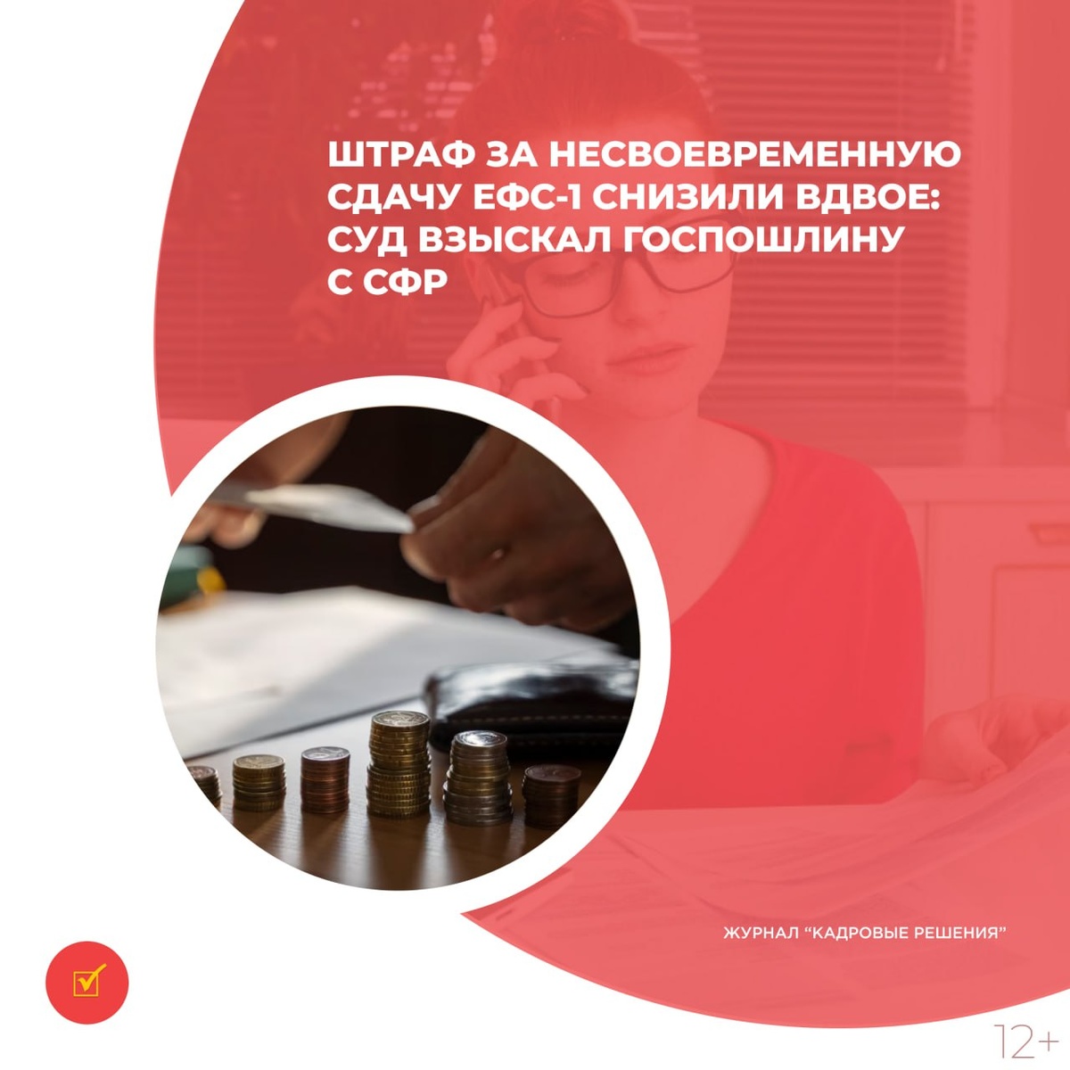 ☝️Организация представила ЕФС-1 с опозданием на день. Фонд начислил ей штраф. Первая инстанция установила смягчающие обстоятельства и уменьшила штраф в 2 раза. Она взыскала с фонда в пользу страхователя госпошлину.