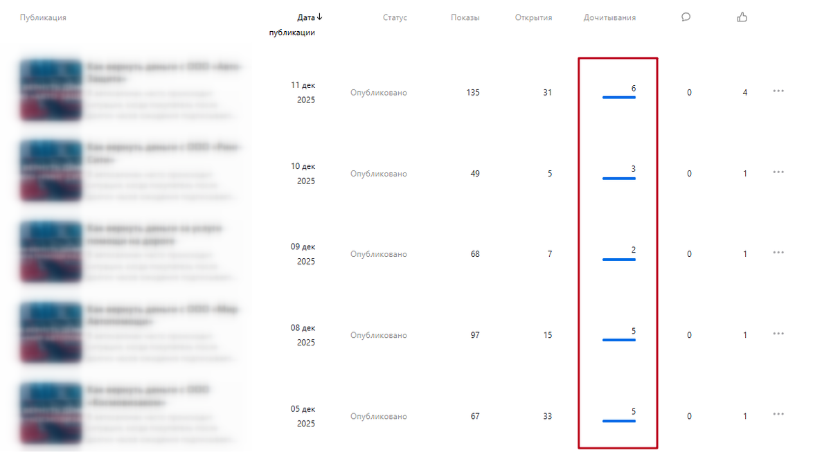 У юридической компании был Дзен-канал. Публиковались давно. Статей — много. Открываешь статистику: 2 дочитывания. Следующая — 5. Ещё одна — 3. И так из недели в неделю, из месяца в месяц. Не потому что юристы плохие. Они отличные специалисты. Просто тексты были написаны так, как пишут юридические документы — для протокола, а не для человека. Заголовки звучали примерно так: «Порядок подачи заявления о взыскании денежных средств с кредитной организации в досудебном порядке». На этапе прочтения заголовка — уже всё. К нам обратилась Марина — она видела, как мы работали с другим клиентом, и хотела того же «волшебного результата». Мы уточнили: а что за результат имеется в виду? Оказалось — речь шла о конкретном кейсе, который мы помогли написать её коллегам. Зашёл в их Дзен посмотреть — и там уже шёл срач в комментариях. Больше пяти тысяч дочитываний. Живые обсуждения. Для канала, где предыдущие публикации набирали по 2–5 дочитываний — это другая реальность. Один текст. Один кейс. Написан п