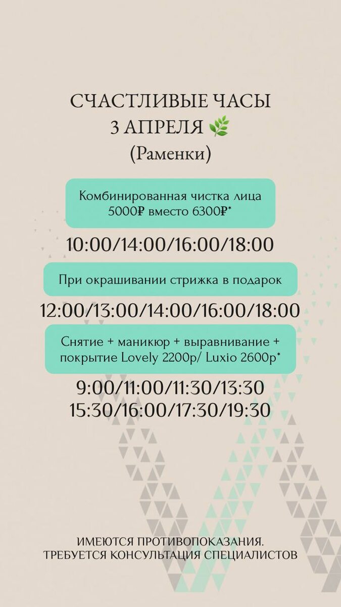 3 АПРЕЛЯ (завтра)🌿 Окна на сегодня 👈 Не упустите возможность записаться на любимые услуги со скидкой 20% Акции и скидки не суммируются! Для записи👇🏻 📞 +7(499)4553857 💌 @womansalonchat