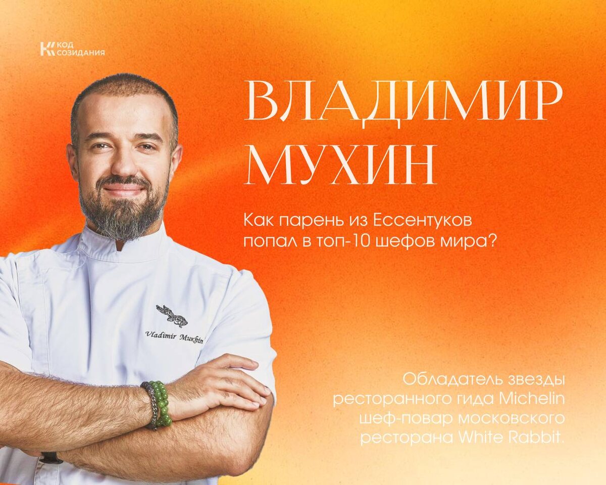 🤍 Уроженец Ессентуков, выросший в семье потомственных поваров, он развивал свои таланты на практике, вынужден был принимать быстрые решения у плиты и учиться на собственных ошибках. Как итог, кухня из места работы стала по-настоящему творческим пространством. 📍 Поэтому и переезд в Москву стал для молодого повара настоящим культурным шоком, ведь столичный темп жизни не каждому позволял проявить свое творческое «я». Но именно здесь гастрономия для Мухина стала настоящим искусством, с его экспериментами, неожиданными вкусовыми сочетаниями, новым кулинарным языком. ⚡ Ключевым этапом карьеры стала работа в White Rabbit, где Мухин сумел соединить исторические русские рецепты с современной подачей. 🤍 Его кухня не замыкается в архаике, это попытка поговорить о национальной идентичности через живой язык кулинарии: отсюда и эксперименты вроде «веганского сала», засоленной мякоти кокоса. 📌 Международное признание не заставило себя ждать. Ресторан один из первых в России получил звезду Mic
