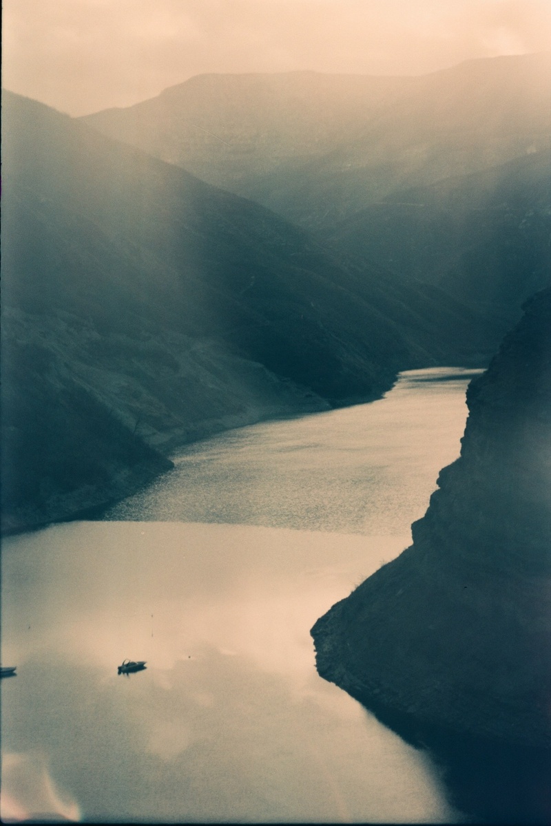 В этот раз на плёнку попался Сулакский каньон. Знаете, есть кадры, которые сразу хочется озвучить музыкой Говарда Шора. Потому что в этом формате — зернистом, мягком, чуть приглушённом — он выглядит точь-в-точь как кадр из фильма про хоббитов. Те самые, где они плывут на лодках куда-то далеко-далеко, за очередной поворот реки, к неизведанным горам и древним тайнам. Скалы, обрывающиеся вниз на сотни метров, на плёнке становятся ещё более величественными и чуть пугающими — как стены Мории, только под открытым небом. Но нет. Только ветер, вода и чувство, что ты попал в историю, которая началась задолго до тебя и закончится ещё не скоро.