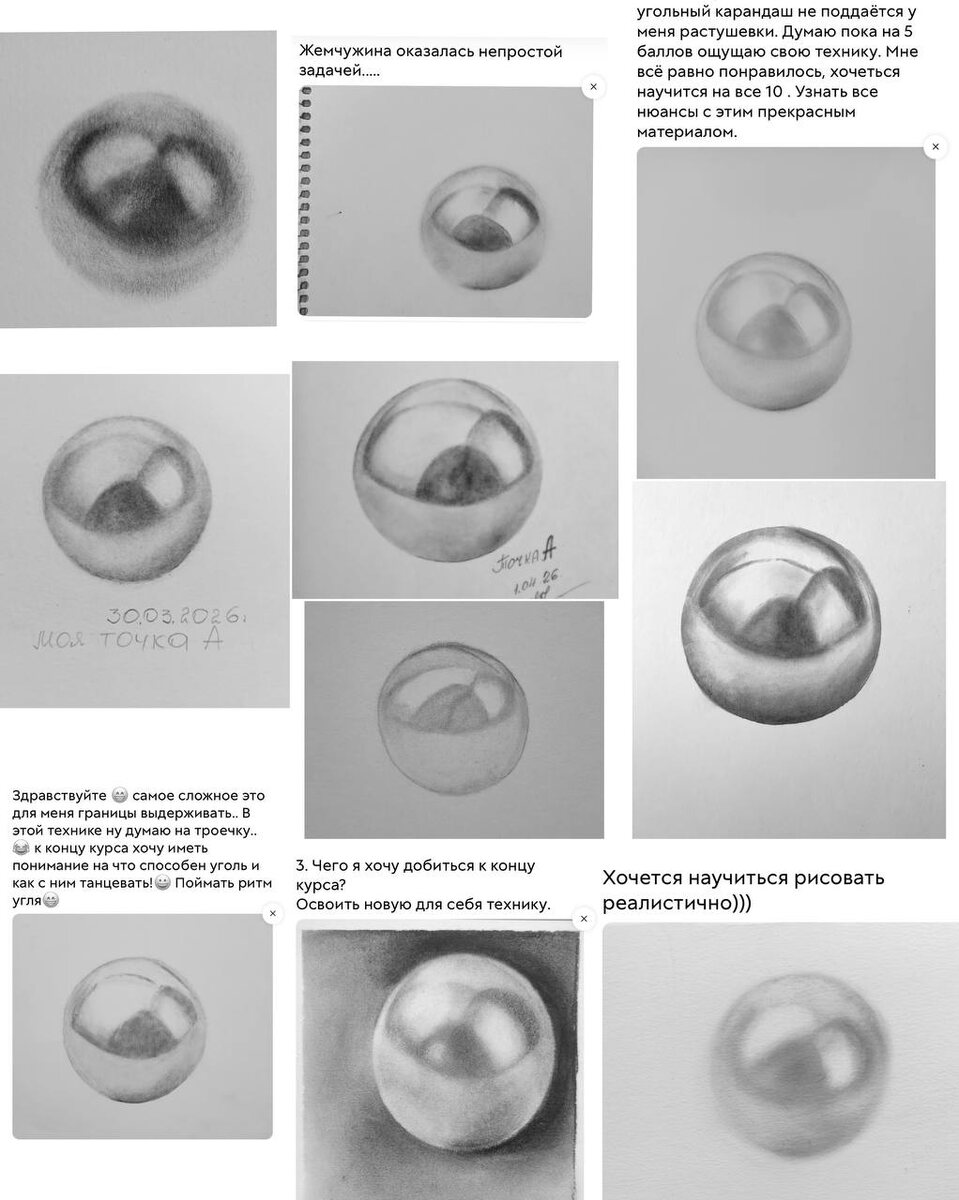 🥹 Каждый день захожу на платформу, просматриваю работы учеников, даю обратную связь. Сейчас идет первая неделя и мы фиксируем навык рисования с которым пришел каждый ученик. Рисуем жемчужинку) У всех такие разные работы получаются, но дух захватывает от того, что это только начало! Все эти люди совсем скоро нарисуют гиперреалистичные рисунки 😍