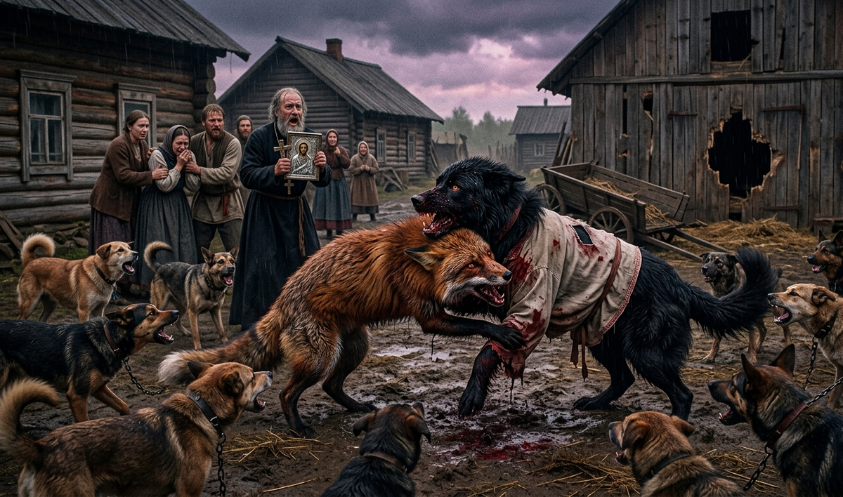 Тут из дома выбежал отец Раи с Казанской иконой в руках. Он поднял её высоко над головой, пытаясь остановить беснующуюся стаю. Но икона не помогла. Разъяренные псы, словно не замечая святыни, с оскаленными клыками бросались на отца, вынуждая его отступить. В деревне началась суматоха и неразбериха. Люди сбегались на шум, родители Кристины тоже появились, бледные, растерянные, глядя на то, во что превратилась их дочь. И в глазах их не было удивления — лишь глубокое, древнее горе. Они знали. Они всегда знали.