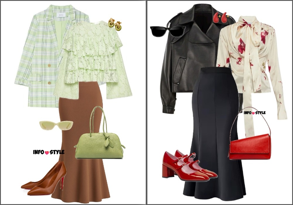- баланс объемов. Поскольку юбка акцентирует внимание на бедрах, лучший способ уравновесить силуэт - добавить объём сверху. Стилизуйте годе с маскулинными пиджаками прямого кроя, винтажными кожаными куртками фасона оверсайз или свободными свитерами крупной вязки;