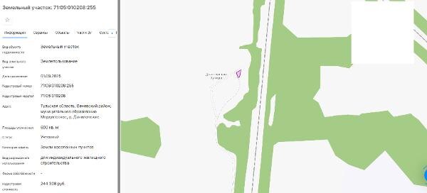 Название: право заключения договора аренды земельного участка из земель населенных пунктов с кадастровым номером 71:05:010208:255, площадь