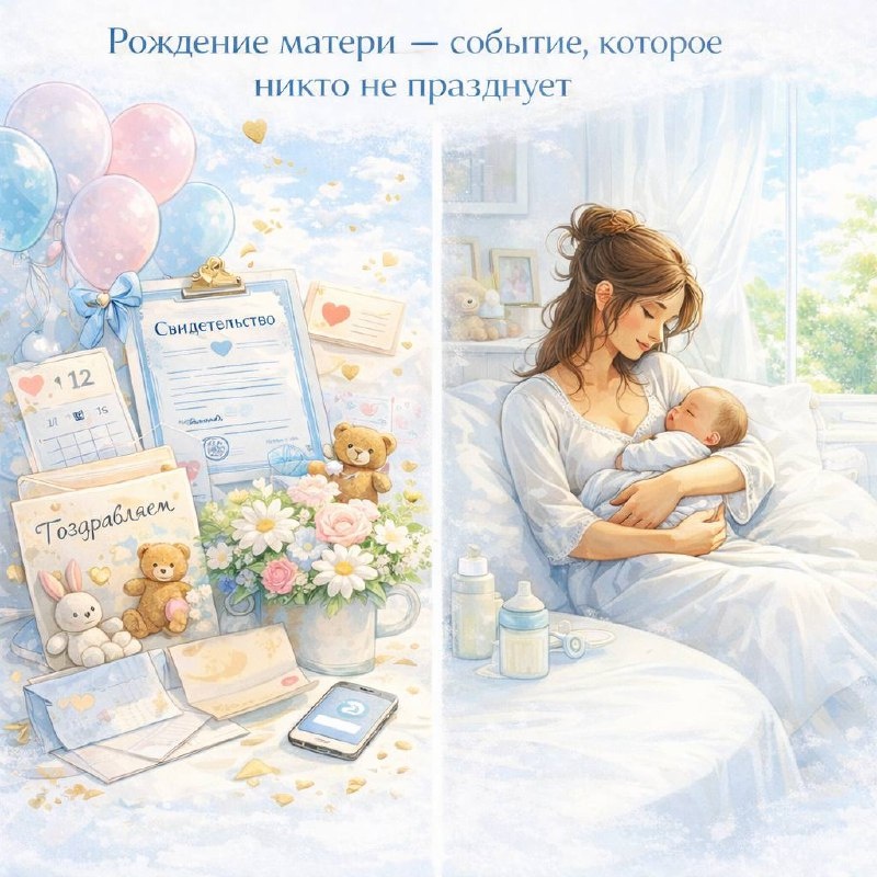 Если появление малыша фиксируется: • датой • документами • поздравлениями • вниманием то рождение матери нигде не оформляется. Женщина как будто должна: • автоматически «стать матерью» • сразу уметь • сразу чувствовать • сразу справляться Во многих культурах раньше существовали: • ритуалы инициации • периоды изоляции • особое обращение с женщиной • признание её уязвимости и силы одновременно Современный мир это утратил. Осталась только функция. В результате: • женщина родила, но не родилась как мать • процесс произошёл физически, но не психически • идентичность не успела перестроиться И именно здесь возникает ощущение: «Со мной что-то случилось, но я не понимаю – что именно». Почему общество перестало культивировать этот переход? Потому что он слишком честный и интимный. Он: • замедляет • делает уязвимой • разрушает привычную эффективность • не укладывается в образ «успешной» Общество плохо выдерживает: • слабость • паузы • неопределённость • процессы