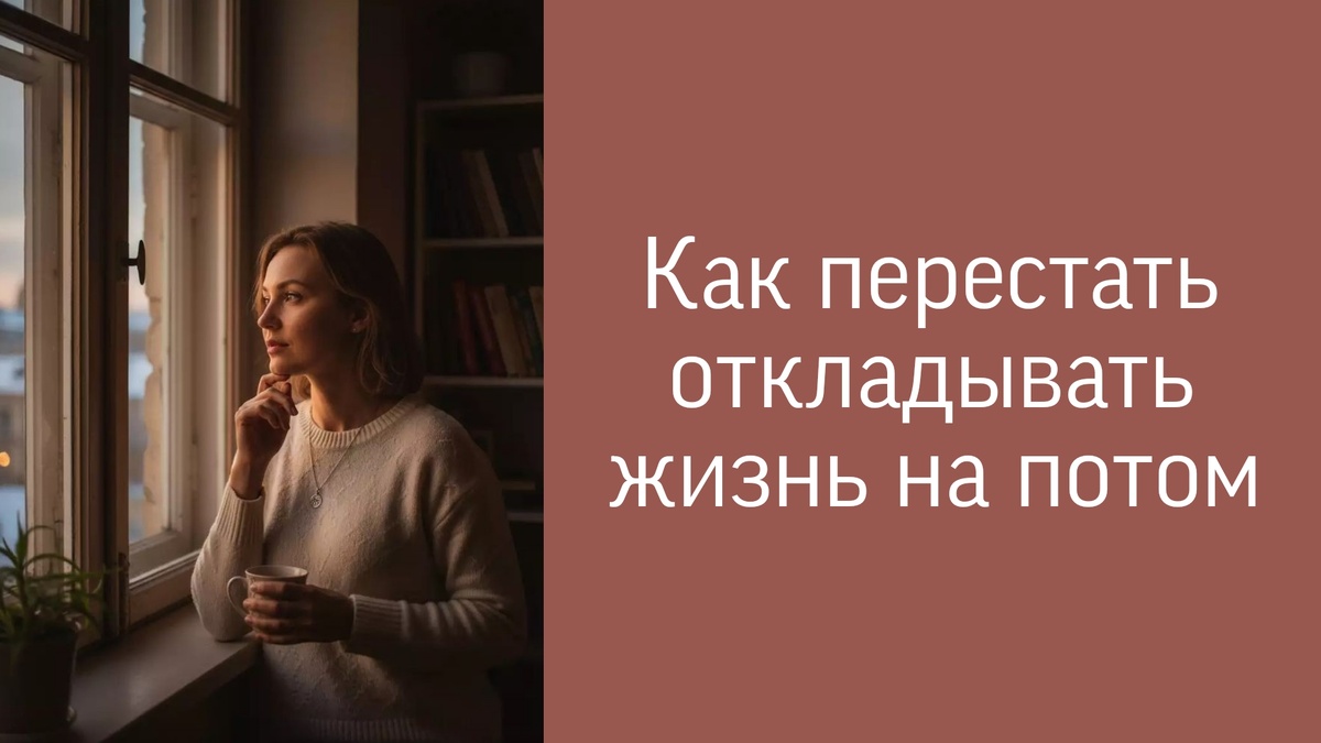 «Вот похудею — тогда и начну», «Вот дети вырастут — тогда и заживу», «Вот куплю квартиру — тогда и отдохну». Знакомо? Мы часто откладываем важные вещи на «потом», но это «потом» почему-то не наступает. Проходят годы, а мы всё в том же круге ожиданий. В статье — 5 причин, почему мы это делаем, и простые шаги, чтобы начать жить уже сегодня.