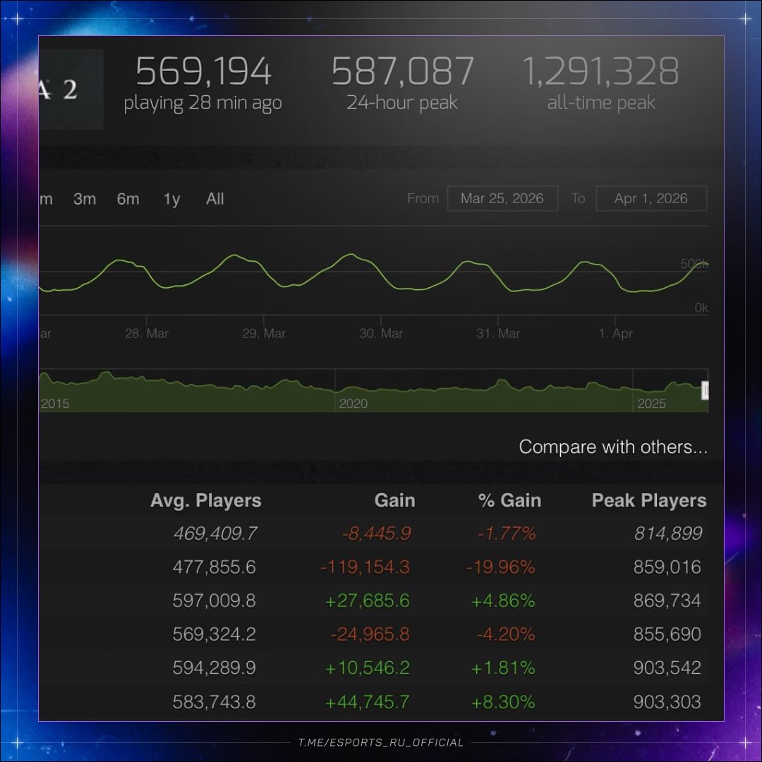 📈 Средний онлайн за март сократился на 120 000 игроков — это рекордное падение