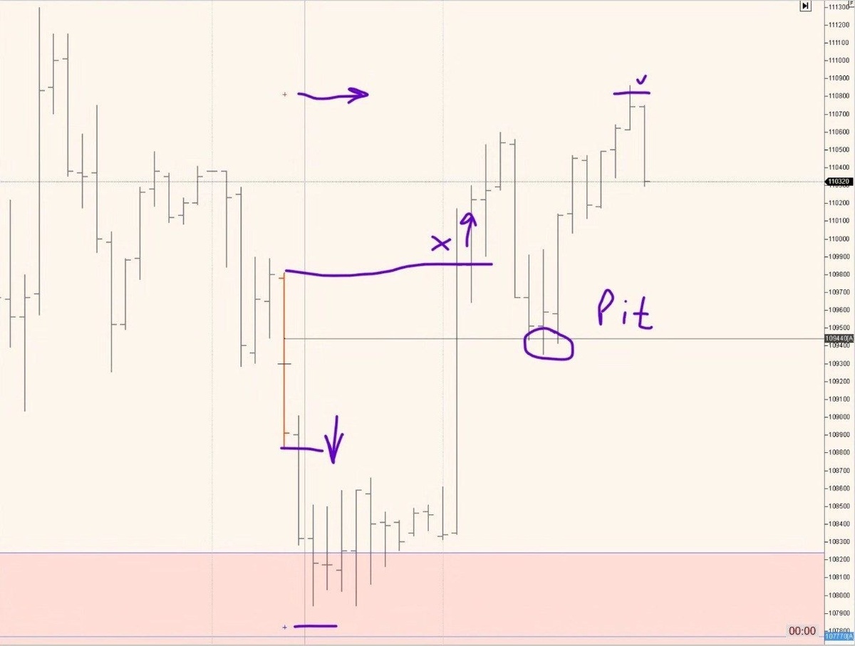 Вход в шорт после акцепта, до цели не дошли. Сегодня с утра пошло сильное движение, усилие поглотили — по правилам стратегии это означает закрытие шорта и переворот в лонг. 🎯 Цель — выше на 1000 пунктов, уровень 110810 — синяя галочка на графике. Обратите внимание, как, дойдя до цели, цена сразу «отвалилась вниз». Это не случайность, а результат большого объёма анализа данных и поиска асимметрий на рынке. Итого: — шорт закрыт с убытком 990 пунктов — лонг закрыт с прибылью 1000 пунктов 📌 Общий результат: 0 Это если работать строго по стратегии. Но вокруг данной стратегии есть и другие идеи со смещённой вероятностью. Одна из них — тест уровня PIT и возобновление. При входе от уровня PIT прибыль уже составила 1370 пунктов — а это уже что-то. Не ИИР