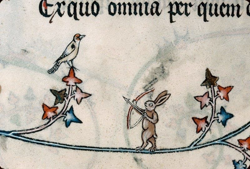🌟🌟🌟🌟🌟🌟🌟🌟🌟🌟 В средневековье свои порядки Помните мы как-то с вами упоминали о том, что кроликов на средневековых документах рисовали очень странно. Как минимум, было выдвинуто предположение о том, что на самом деле кролики вели себя как настоящие дебоширы и убийцы! 🌟 На самом деле, в таких картинках нет никакооо смысла, потому что это – дролери ( в пер. с французского шалость, чудачество). Помимо основных документов, которые писались на постоянной основе, люди в средневековье, как и мы, тоже любили различные шутки. Поэтому все, что вы видели это не официальные документы, а обычные карикатурки на происходящее🌟