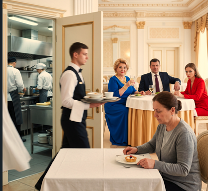 В ресторане повисла такая звенящая тишина, что было слышно, как на кухне шумит вода в раковине.