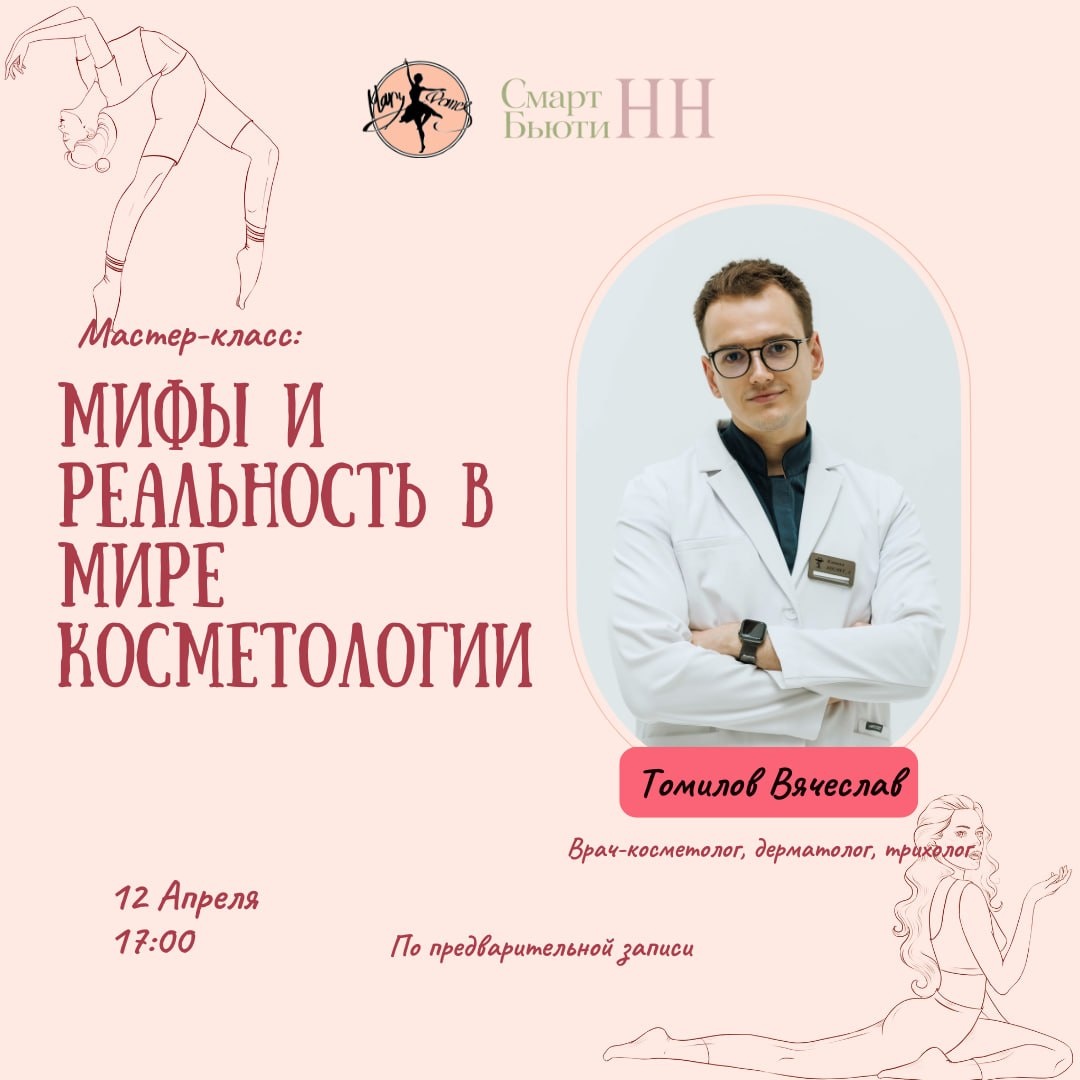 Ботокс — это опасно? Загар — это красиво или вредно? Можно ли обойтись только кремами? В мире косметологии много противоречий, советов и маркетинга. На этом мастер-классе разберёмся, что действительно работает — а что только кажется. 🌿 О чём поговорим: — Ботокс: токсин или всё-таки инструмент в руках специалиста? — Косметолог — разовая история или регулярная забота о себе — Может ли домашний уход заменить процедуры — Загар: показатель «здоровья» или ускоренное старение кожи — Подход к коже: только лицо или организм в целом — Косметолог и пластический хирург — конкуренция или совместная работа Это будет спокойный разговор без давления и «страшилок» — чтобы вы могли лучше понимать своё тело и делать осознанный выбор. 👤 Ведущий: Томилов Вячеслав Олегович Врач-косметолог, дерматолог, трихолог Ординатор Института клинической медицины 🤝 Мастер-класс проходит совместно с СМАРТ БЬЮТИ — клиникой эстетической косметологии 📎 Подробнее о партнёре: https://t.me/smartbeautynn 📍 12 апре