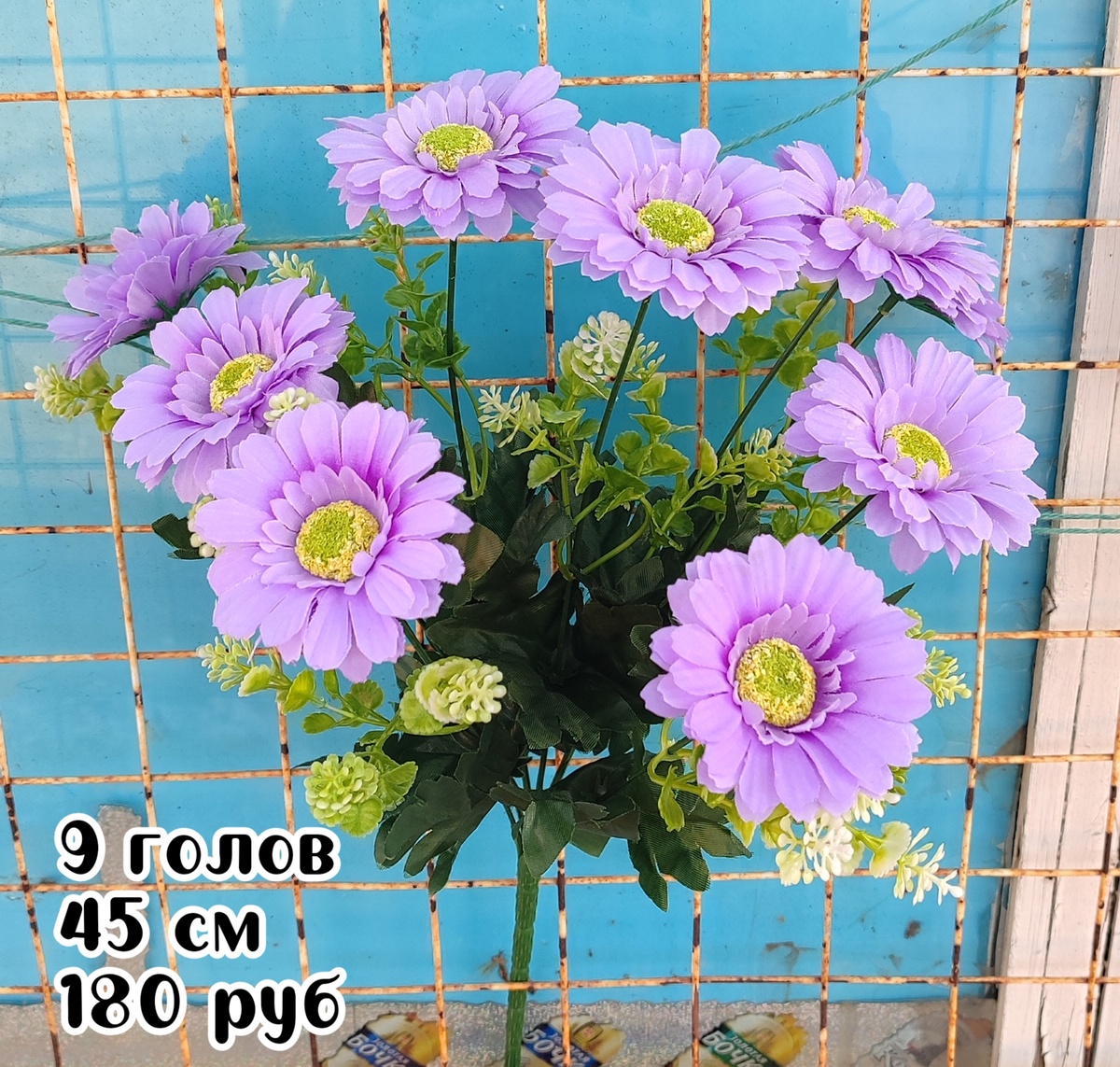 Цветки - пластик. 2 расцветки - белые ромашки и желтые, типа подсолнухи, но без черной серединки, просто жёлтые