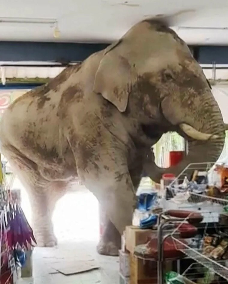 В одном из магазинов Таиланда произошла сцена, которую трудно назвать обычной. Дверь распахнулась — и вместо покупателя внутрь уверенно вошёл огромный слон. Без суеты и паники он спокойно осмотрел витрины, словно знал, что именно ищет.