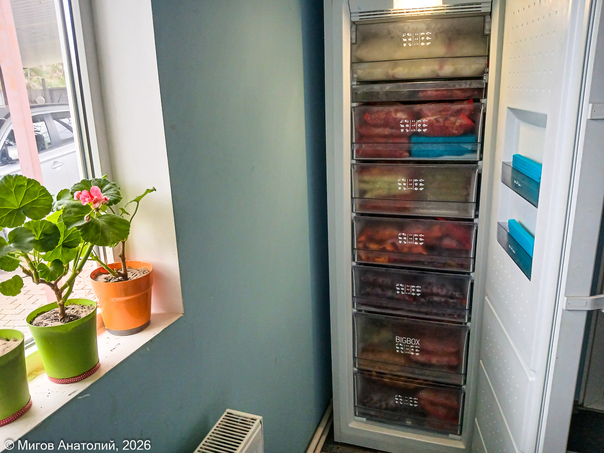 Мы ещё в 2018 году приобрели большой морозильный шкаф Атлант объемом 215 литров. И летом-осенью забиваем его овощами и фруктами под завязку.