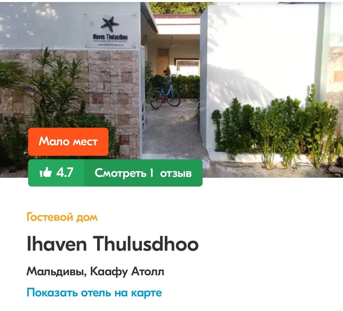 ). https://trvl.click/x/JMUu7 ℹ️ Что входит в стоимость: Перелет, проживание, трансфер, страховка. Питание Завтрак. ▫️ Ihaven Thulusdhoo Гостевой дом до пляжа 230 м., Каафу Атолл, 8 ночей, Завтрак, прямой чартерный. Вылет 9 апреля, 91 250 руб/чел (за двух взрослых 182 500) https://trvl.click/x/hr6y3 ▫️ Ocean Retreat & Spa Гостевой дом до пляжа 270 м., Каафу Атолл, 8 ночей, Завтрак, прямой чартерный. Вылет 9 апреля, 94 950 руб/чел (за двух взрослых 189 900) https://trvl.click/x/CO7Uw ▫️ Nest By Hawks 2* до пляжа 350 м., Баа Атолл, 8 ночей, Завтрак, прямой чартерный. Вылет 9 апреля, 97 350 руб/чел (за двух взрослых 194 700) https://trvl.click/x/10kPA Все туры (цена будет указана за двух взрослых) https://trvl.click/x/JMUu7 По ссылкам цена указана за двух взрослых. Вы можете изменить город вылета и количество человек, цена обновится автоматически. Промокоды для скидки KLIK1100 от 60000 рублей, скидка 1100 рублей KLIK2000 от 100000 рублей, скидка 2000 рублей KLIK4000 от 200000 рубле