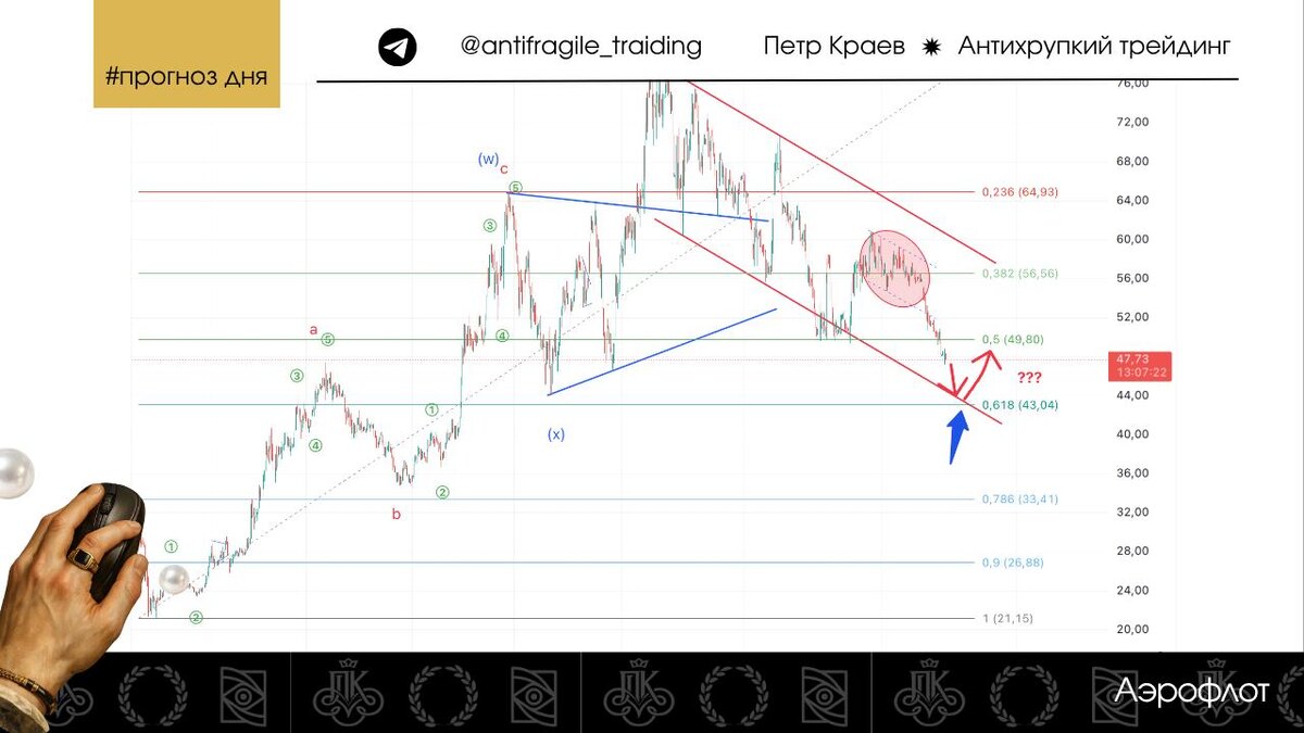 Не совсем так быстро, как я предполагал в ноябрьском прогнозе, но бумага продолжает падать. Да, на новостях сопротивляется. Вот, к примеру, был сформирован локальный флаг на рост (выделен на скрине). Но он не устоял и цена возобновила своё движение вниз. В моменте уже второй раз подходит к нижней границе канала (отмечен красными линиями). 👁️🗨️Ссылка на график: https://www.tradingview.com/x/SjKWuvG8/ Считаю, что сейчас наступает решающий момент. Потому что на уровне 43 располагается мощный уровень поддержки. Если он не устоит - о долгосрочном развороте можно забыть надолго. Что касается лично меня, то в позиции не нахожусь. Вышел ещё в феврале прошлого года. Наблюдаю со стороны. Данное сообщение носит информационный характер и не является индивидуальной инвестиционной рекомендацией.