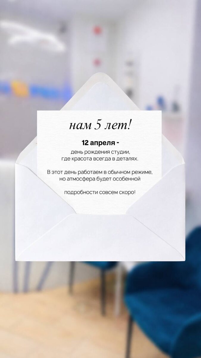🎁 Уже 12 апреля студия «Ты космос!» отмечает свой юбилей - нам исполняется целых 5 лет! Пять лет заботы о вашей красоте и здоровье ♥️ В этот особенный день вас ждёт: — фуршет — подарки — розыгрыши и лотерея — любимые мастера и тёплая атмосфера Совсем скоро мы встретимся с вами, чтобы вместе отметить этот космический праздник, зарядиться настроением и провести время красиво 😍 Записывайтесь по ссылке! (если вы не записаны на процедуры вы можете придти на праздник без записи ) 😌 📍Пр-кт Гагарина 24к2