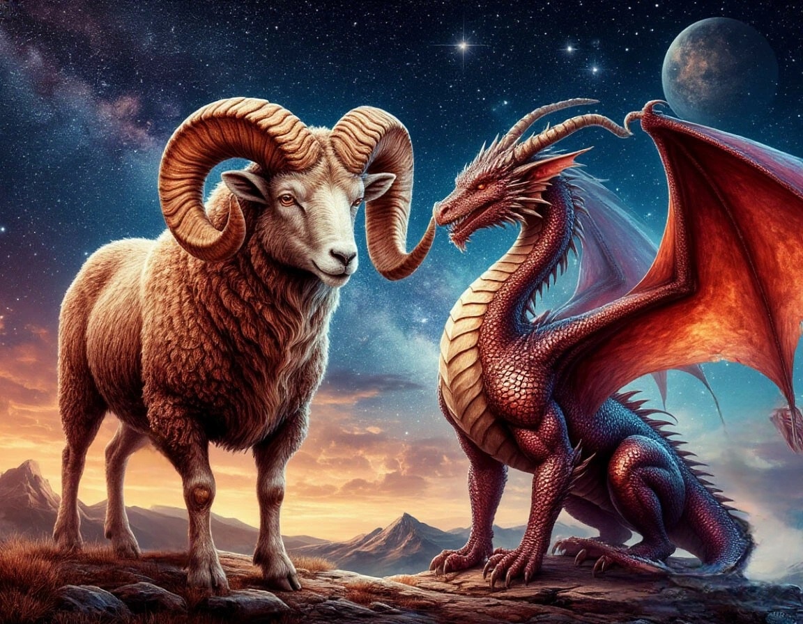 Это очень мощное, взрывное и харизматичное сочетание. В китайской традиции Дракон — символ власти и удачи, а в западной Овен — первопроходец и воин. Вместе они дают личность с двойным зарядом огня, лидерства и амбиций.