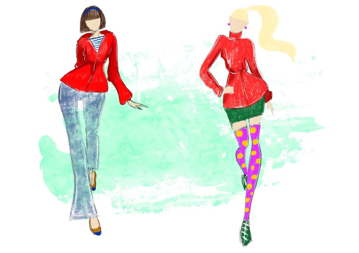 Придумала два варианта стилизации: классику (это как если бы носила я) и вырвиглаз (как вам чулки?) Подумалось, что создавать просто аккуратные образы довольно скучно - уж в рисунке-то можно правилами пренебречь. Мама сказала - прикольные девицы) так и запишем.