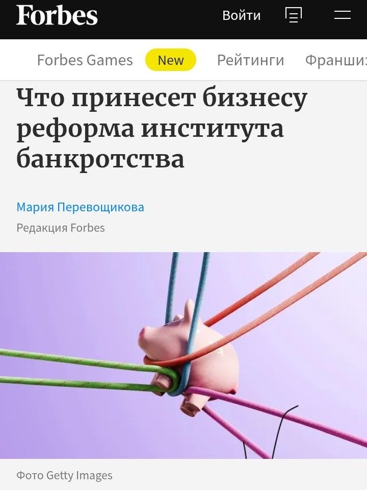В Forbes вышел материал журналиста Марии Перевощиковой с моими подробными комментариями. Внесенный в Думу законопроект о реформе института банкротства, которого бизнес ждал пять лет, смещает фокус с ликвидации бизнеса на его реабилитацию - такой подход особенно актуален в текущей экономической ситуации, говорят представители бизнеса. Проект предполагает введение двух принципиально новых