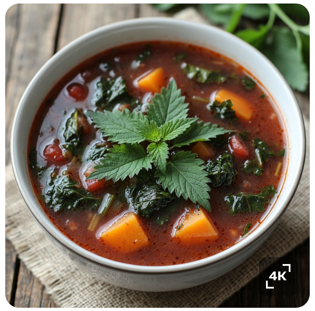 В итоге получится блюдо, где нежная кислинка щавеля встречается с травяной свежестью крапивы, а свекольный оттенок делает вкус особенно цельным.
