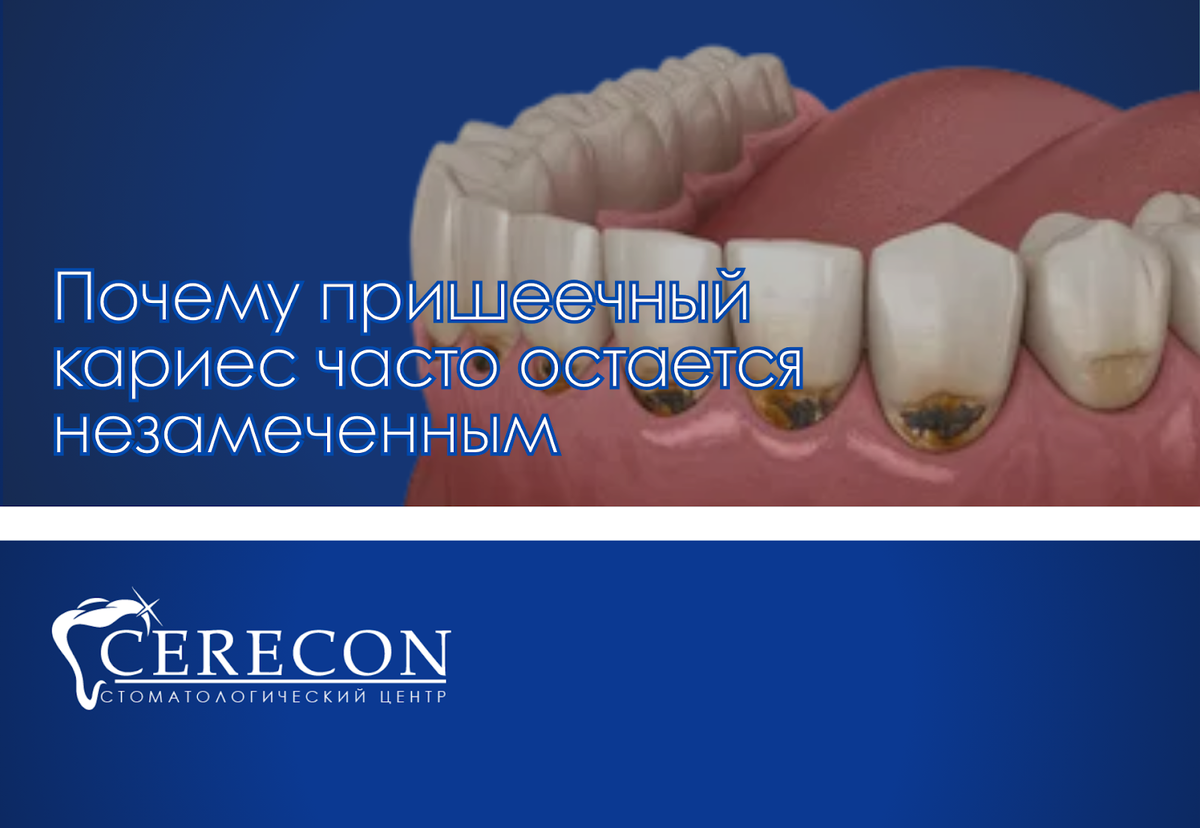 Иногда кариес развивается не на жевательной поверхности, а ближе к десне — в области шейки зуба. Это участок перехода между коронкой и корнем. Такой процесс называется пришеечный кариес. Особенность в том, что зона у десны хуже просматривается и сложнее очищается. Налет здесь задерживается дольше, а значит, бактерии активнее воздействуют на эмаль. На ранних этапах изменения могут выглядеть как светлое или, наоборот, потемневшее пятно у края десны. Боли при этом часто нет, поэтому проблема долго остается без внимания. Механизм развития аналогичен обычному кариесу. Бактерии зубного налета перерабатывают углеводы и выделяют кислоты. Эти кислоты снижают pH и запускают деминерализацию — потерю минералов эмали. Однако в пришеечной области есть особенности. Эмаль здесь тоньше, а иногда часть поверхности может быть прикрыта десной. При ее рецессии (опущении) оголяется корень зуба, который менее устойчив к воздействию кислот. Если представить зуб как защитную оболочку, то пришеечная зона — наи