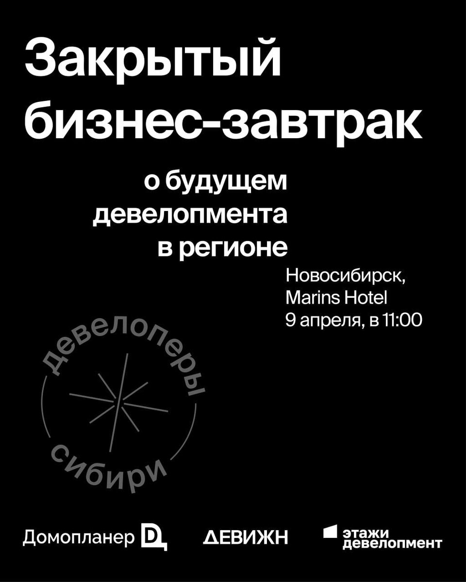 🐚🐚🐚 Закрытый бизнес-завтрак о будущем девелопмента в Новосибирске пройдёт уже 9 апреля и мы готовы анонсировать полный состав спикеров