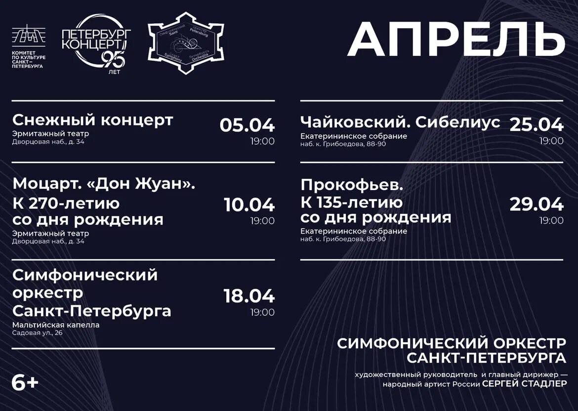 Симфонического оркестра Санкт-Петербурга! «Дон Жуан», «Снежный концерт» и программы к 270-летию Моцарта и 135-летию Прокофьева в Эрмитажном театре, Екатерининском собрании и Мальтийской капелле. Билеты на сайте по ссылке 💬 Мы в МАХ
