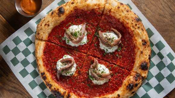 В меню от пепперони и "Маргариты" до Lao Gan Ma с хрустящим чили и Pineapple Express с ананасом кимчи и окороком. Плюс к каждой пицце подают соус для корочки, который заканчивается примерно за минуту. Но дело пиццей не ограничивается. Здесь выдающийся сэндвич "Рубен", салат панцанелла из ароматных томатов, яблочный пирог с тончайшим слоем теста и много других блюд.
