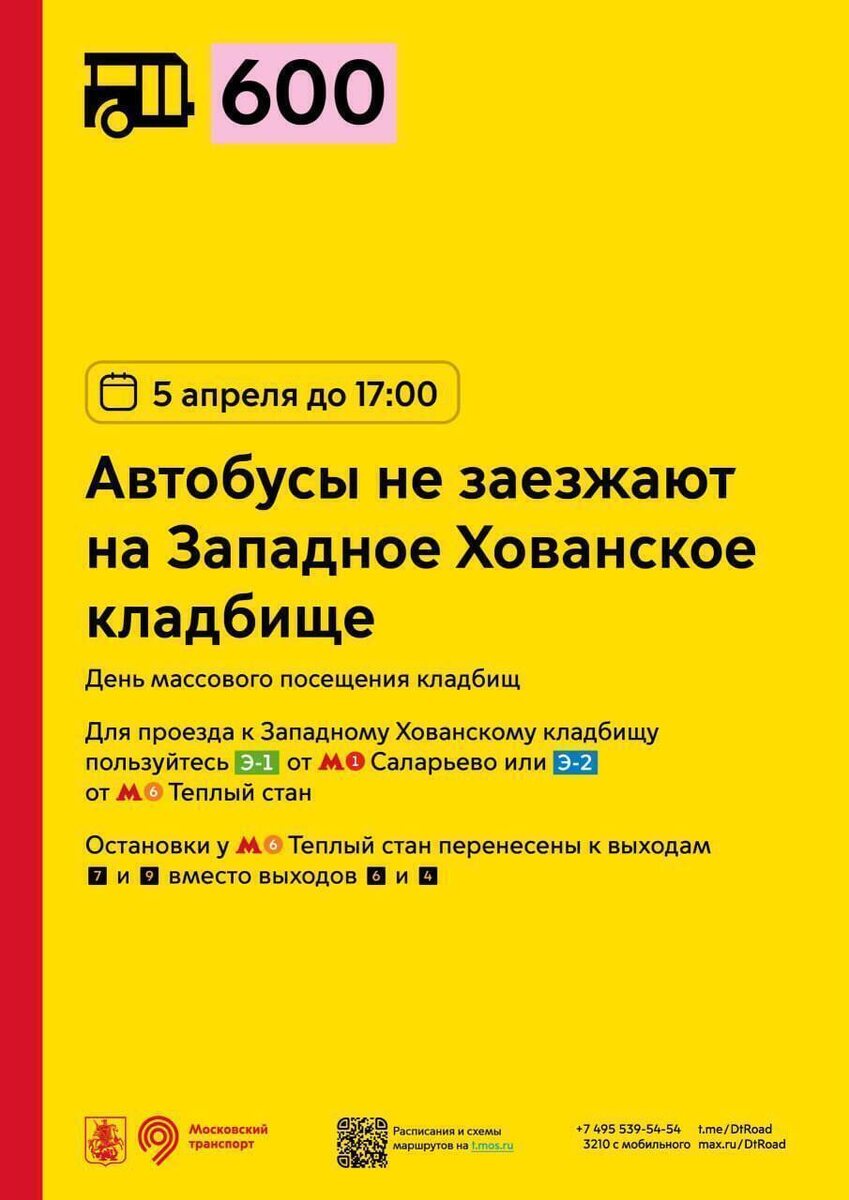 В Вербное воскресенье автобусы не будут заезжать на Западное Хованское кладбище.