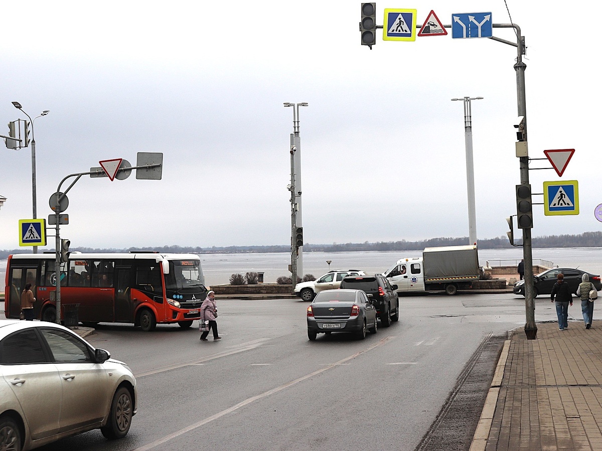 На сложном перекрестке Нижневолжской набережной и Зеленского съезда вторые сутки подряд не работают светофоры